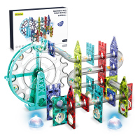 纽奇(Nukied) 儿童磁力片彩窗积木玩具摩天轮带音乐灯光滚珠滑道3-6岁男女孩大颗粒积木 140件套(配收纳袋)
