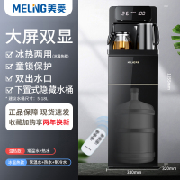 美菱饮水机家用立式智能下置水桶冷热多功能全自动桶装水茶吧机 [大屏双显]幻夜黑[大屏双显+远程遥控+置杯靠背] 冰温热