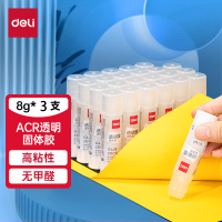 得力7106 固体胶胶棒小号8g/支 3支装 ACR缓干材质强黏缓干 透明色高粘度顺滑便携无甲醛 财务办公用品
