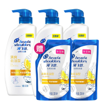 海飞丝洗发水套装清爽去油450ml*3送补充装200ml*2 持久去屑控油 男士女士通用 柠檬香