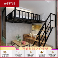 苏宁放心购复式二楼铁艺床小户型楼阁悬空高架床上床下空双人公寓宿舍吊架床A-STYLE家具