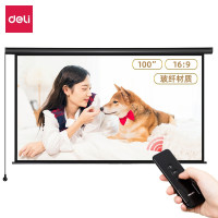 得力deli50450幕布高端系列100英寸16:9白玻纤遥控电动投影幕布投影布(标配遥控器)家用投影仪商务办公幕布