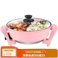 九阳鸳鸯电火锅锅家用多功能炒菜电热蒸煮一体1-2-4人小型电火锅 粉色