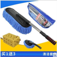 汽车用品专用工具洗车拖把掸子刷子擦车布长杆柄伸缩软毛除尘 纯棉线(加厚款)+备用头 抖音
