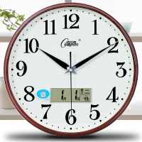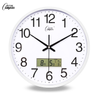 康巴丝(Compas)电子简约挂钟客厅卧室办公钟表 日历时钟大号石英钟温度 20英寸以上 升级款--液显咖木(圆形)