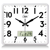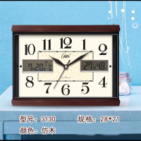 康巴丝(Compas) 钟表日历卧室石英钟时尚方形钟简约电子钟田园创意座钟 10英寸 2991咖木日历 抖音