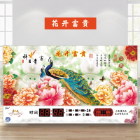 康巴丝(Compas)LED电子万年历时尚简约客厅挂钟风景夜光 钟表时钟挂表 20英寸以上 花开富贵 抖音