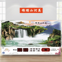 康巴丝(Compas)LED电子万年历时尚简约客厅挂钟风景夜光 钟表时钟挂表 26英寸 锦绣山河美 抖音