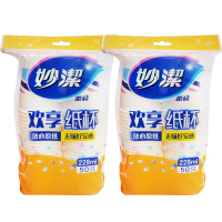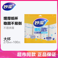 妙洁一次性纸杯加厚无异味白色杯子办公家用聚餐婚庆饮料杯100只 中杯 228ml/2包 抖音