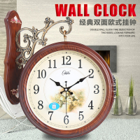 康巴丝欧式双面钟客厅大号两面挂钟 创意时钟现代石英钟表挂表 20英寸(直径50.5厘米) 2609(木纹色) 抖音