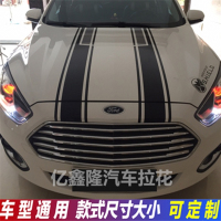 福特新蒙迪欧福克斯三厢福睿斯汽车身贴纸腰线个性划痕改装饰拉花 只要机盖贴(黑+灰) 抖音