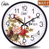 康巴丝(Compas)14英寸 挂钟客厅简约时尚卧室时钟壁挂表现代创意石英钟 14英寸(直径35.5厘米) 黑框牡丹款