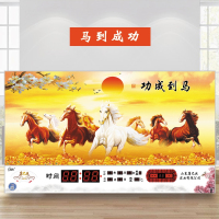 康巴丝(Compas)LED电子万年历时尚简约客厅挂钟风景夜光 钟表时钟挂表 20英寸以上 马到成功 抖音
