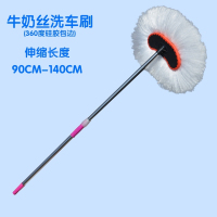 汽车用品专用工具洗车拖把掸子刷子擦车布长杆柄伸缩软毛除尘 牛奶丝(加厚款1.4米) 抖音