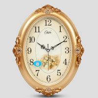 康巴丝 客厅表大挂钟时尚创意钟表田园钟表简约挂表欧式石英钟 16英寸(直径40.5厘米) 椭圆形(金色)2632 抖音