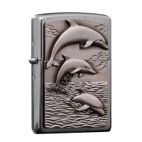 美国ZIPPO打火机 芝宝 欧版海豚之舞拉丝镀铬 男士礼品