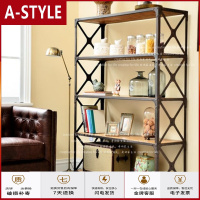 苏宁放心购美式复古优质铁艺实木书架复古仿锈搁板架置物架做旧书架收纳架客厅卧室欧式田园A-STYLE家具