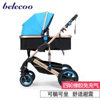belecoo贝丽可 535-Q3 四轮橡胶防爆避震高景观婴儿推车 土豪金珊瑚蓝