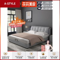 苏宁放心购床 现代简约真皮床双人主卧婚床北欧轻奢储物1.8米小户型软包大床A-STYLE家具
