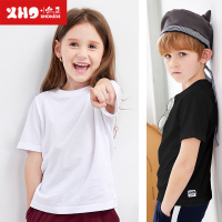 小红豆童装儿童短袖纯棉夏装女童白色打底衫男童黑色纯色半袖上衣
