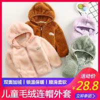 1-10岁儿童毛绒外套秋冬新款宝宝珊瑚绒连帽加厚绒男女童拉链童装外套