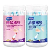 海氏海诺 碘伏棉棒60支+酒精棉棒60支 一次性消毒碘伏棉签伤口杀菌消毒护创 户外急救护理用品 新生婴儿肚脐消毒