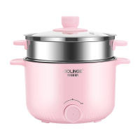 奥林格ZG-A3宿舍锅学生多功能电煮锅家用小功率寝室炒菜煎神器一体火锅2L 玫红粉(带蒸笼)
