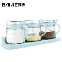 玻璃调味罐创意调料盒 厨房家用调料瓶组合三件套调味盒调料罐套装 辣椒味精盐罐组合装带底座