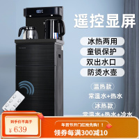 荣事达饮水机家用立式下置水桶冷热智能小型全自动桶装水茶吧机 黑遥控升级(双出水口+显示屏)6升 冰温热