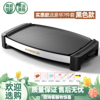 志高电烧烤炉家用不粘烤肉机韩国电烤盘铁板烧烤肉锅麦饭石锅 椭圆烤盘-黑色-[实惠款]