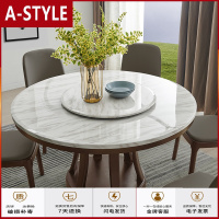 苏宁放心购轻奢大理石餐桌家用圆形饭桌多功能餐桌椅组合北欧简约带转盘圆桌A-STYLE