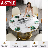 苏宁放心购电磁炉餐桌轻奢家用现代大理石北欧圆桌带转盘饭桌餐桌椅组合A-STYLE