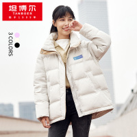 坦博尔羽绒服女2021年新款时尚休闲立领微廓形潮流撞色保暖女士羽绒服外套TD216360