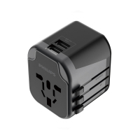 飞利浦(Philips)SPS1001A/93 两位USB通用转换插头适用欧标英标美标澳标插座 黑色