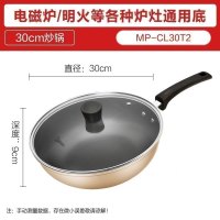 美的炒锅麦饭石不粘锅家用电磁炉适用燃煤气灶一体通用炒菜锅专用 30cm-燃磁通用金色