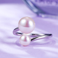 佰色传情(BRIR) S925银珍珠开口纯银戒指可调节女生气质时尚送女友