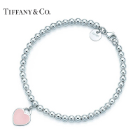 TIFFANY&CO.蒂芙尼 Return to 系列:轻奢饰品珠式心牌 S925银手链粉色银手链