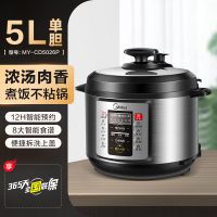 美的电压力锅家用多功能全自动高压锅智能5L双胆饭煲 〖标准版〗拉丝银