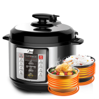 美的电压力锅家用全自动5L双胆智能电高压锅饭煲 〖拉丝银〗5L