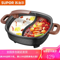苏泊尔(SUPOR)多用途锅电火锅家用多功能电热锅电煮锅6L麦饭石色不粘锅鸳鸯火锅锅 6L麦饭石色鸳鸯火锅