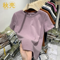 秋壳香芋紫纯棉短袖t恤女2022年夏新款宽松百搭圆领体恤小衫上衣