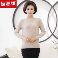 恒源祥中老年纯羊毛套头毛衣女装2019秋冬半高领打底妈妈装羊毛衫