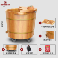 本博泡脚桶电动按摩足浴盆家用恒温加热洗脚木桶全自动过小腿神器 [天然橡木桶]全自动+加热快+气泡活氧+冲浪加热技术+智能