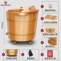本博泡脚桶电动按摩足浴盆家用恒温加热洗脚木桶全自动过小腿神器 舒适款[天然橡木桶+防漏电插头]37CM深桶+触摸屏+气泡