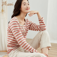 顶瓜瓜19年春夏家居服新品条纹纯棉长袖长裤韩版宽松睡衣顶呱呱