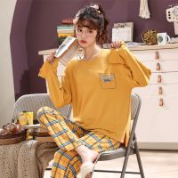 春秋季睡衣女棉质长袖长裤韩版宽松家居服卡通网红套装可外穿冬天
