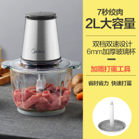 美的绞肉机家用电动多功能料理机小型打肉馅碎肉搅拌辅食机绞馅机 银灰色[升级可打蛋]2L