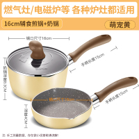 萌宠黄 辅食套装锅 [奶锅+煎锅] 苏泊尔宝宝辅食锅不粘锅婴儿多功能煎煮一体煮粥儿童麦饭石小奶锅