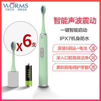 worms电动牙刷男女成人家用充电式软毛全自动牙刷防水声波牙刷 苹果绿 一档位电池款配(6刷头+5号干电池)