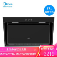 美的抽油烟机家用厨房智能厨电顶吸式小型欧式大吸力自动清洗 浅灰色